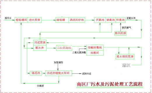 該廠2013年11月16日建成投入試運(yùn)行,2014年7月21日通過環(huán)保竣工驗(yàn)收。目前該廠保持持續(xù)、穩(wěn)定正常運(yùn)行,其中2018年處理污水量14653417噸,處理率達(dá)到80.3%以上。工藝流程圖如下:
