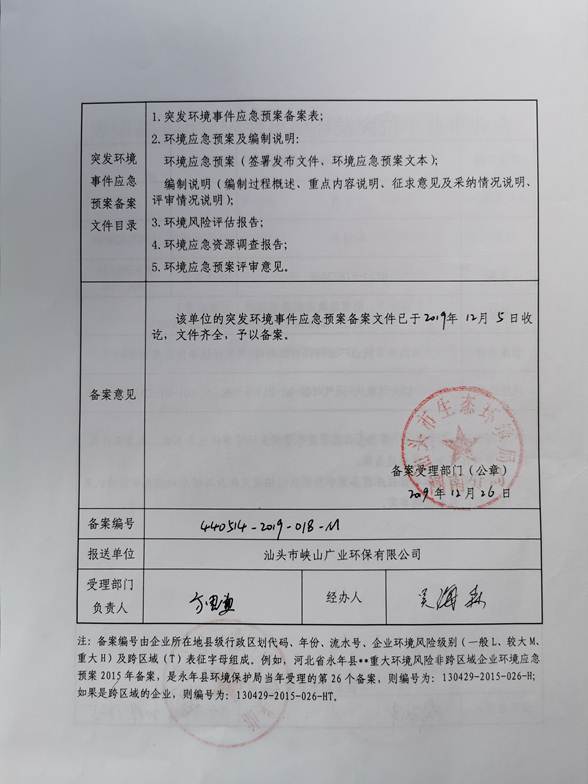 企業(yè)名稱:汕頭市峽山廣業(yè)環(huán)保有限公司