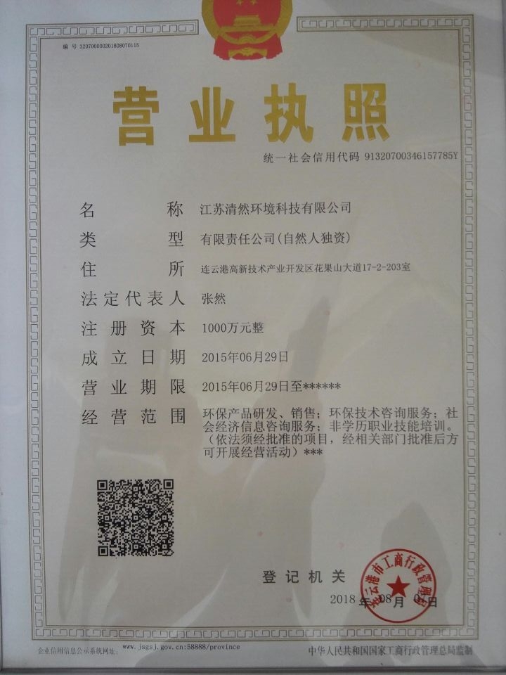 營業(yè)執(zhí)照統(tǒng)一社會信息代碼:91320700346157785